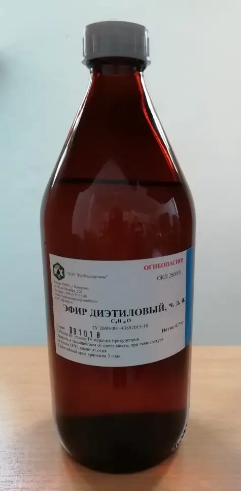 Производитель гарантирует содержание эфира диэтилового не менее 99,5%.