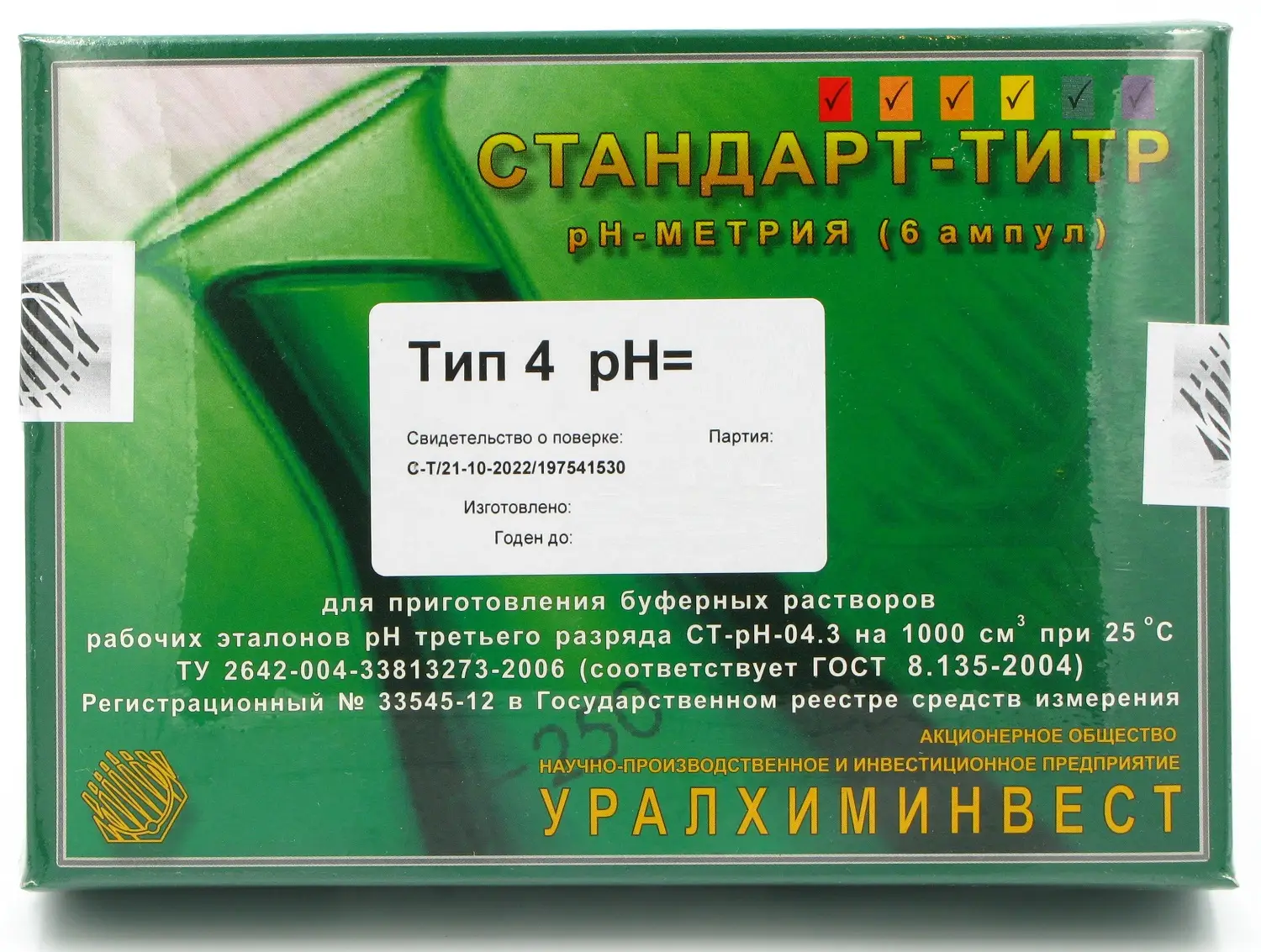 Стандарт-титр pH-метрии 3 разряда, pH=12,43 ГОСТ 8.135-2004 (упак. 6 шт) купить с доставкой по России | Химмедсервис
