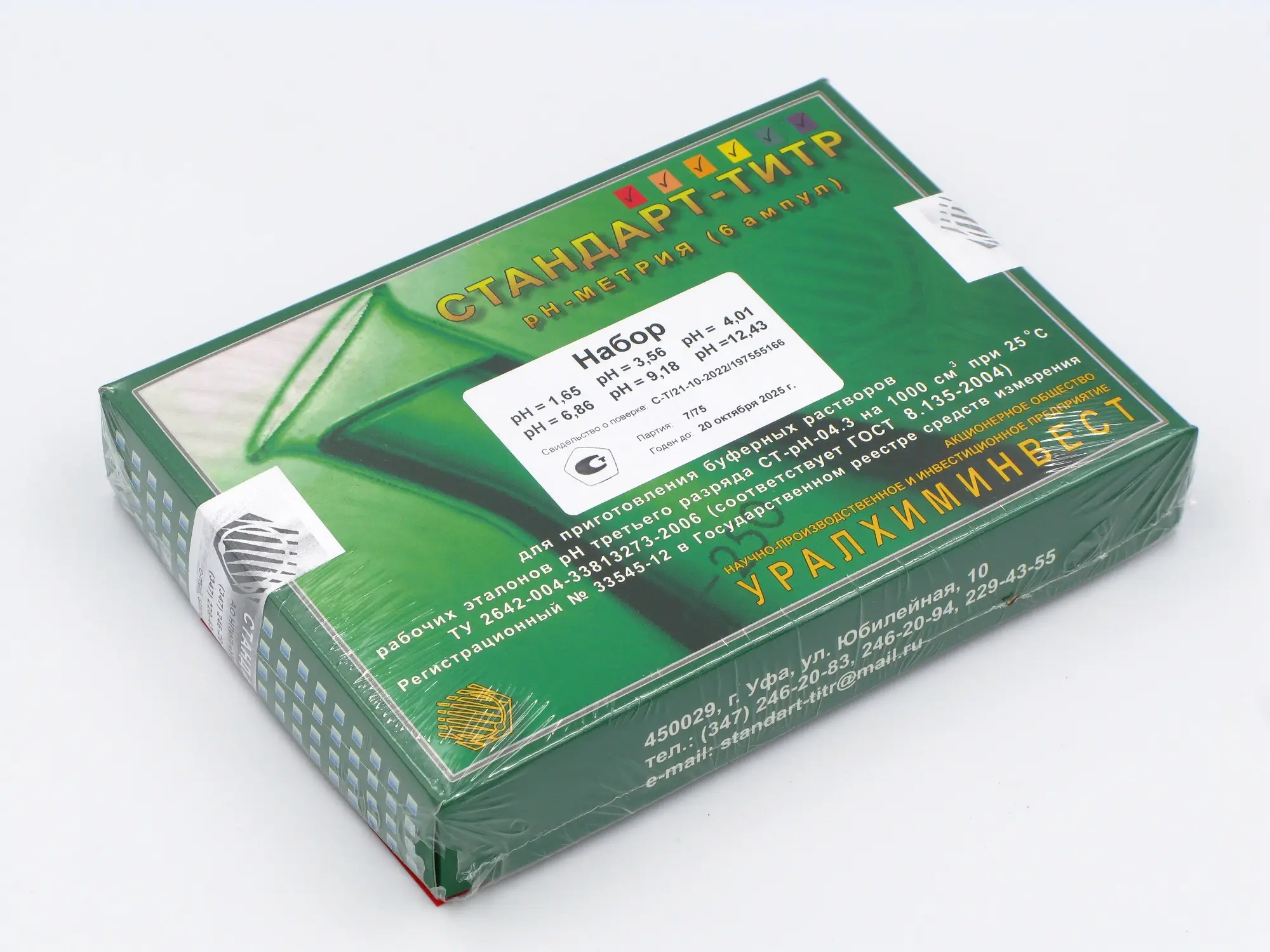Стандарт-титр pH-метрии 3 разряда, набор pH=1,65; 3,56; 4,01; 6,86; 9,18; 12,43, ГОСТ 8.135-2004 (упак. 6 шт) купить с доставкой по России | Химмедсервис