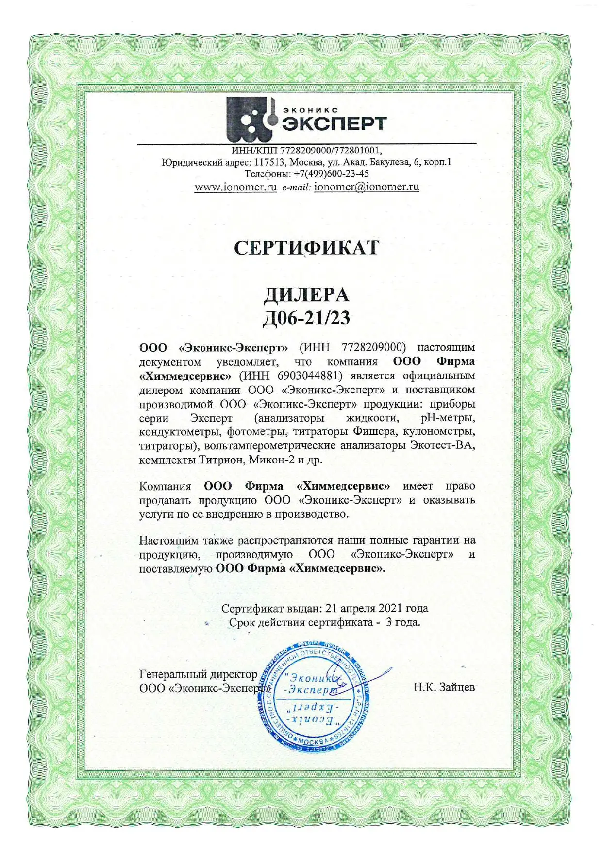 ООО Фирма "Химмедсервис" является официальным дилером ООО "Эконикс-Эксперт"