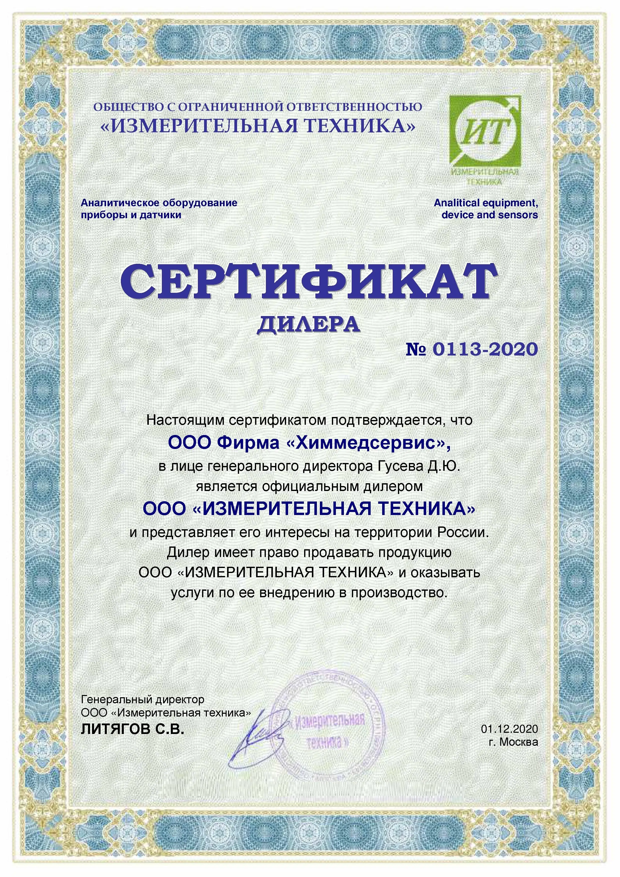 ООО ФИРМА "ХИММЕДСЕРВИС" - официальный дилер ООО "ИЗМЕРИТЕЛЬНАЯ ТЕХНИКА" в России