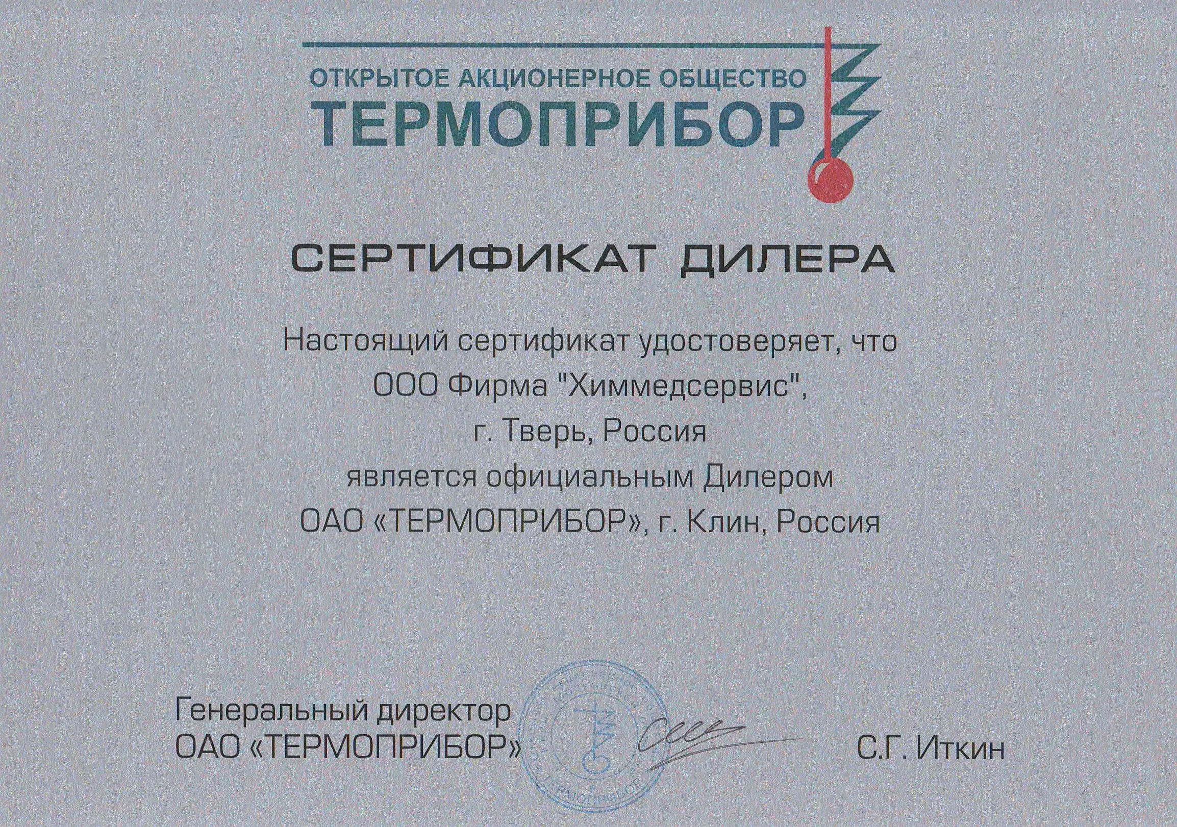 ООО Фирма "Химмедсервис" является официальным дилером ОАО "Термоприбор"